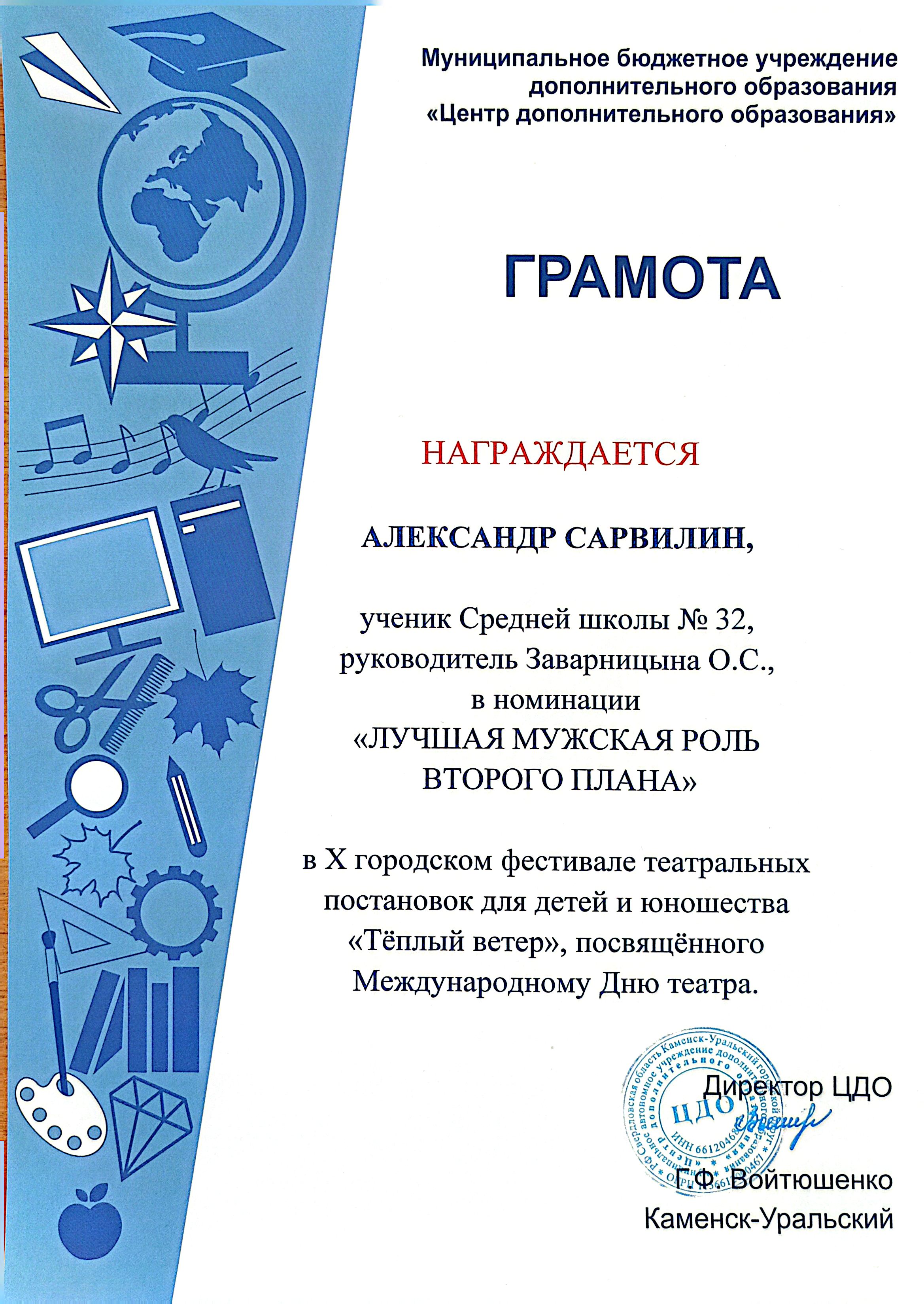 лучшая мужская роль второго плана - Грамота